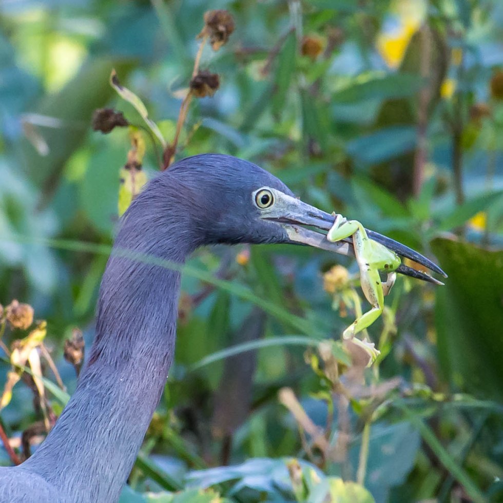 Little Blue Heron with Tree Frog
